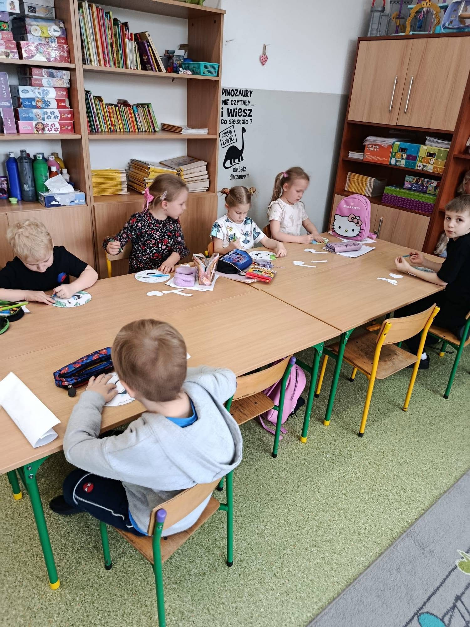 Z zaangażowaniem wykonały pracę plastyczną "Odznaka przyjaciela Ziemi" oraz wykazały się kreatywnością podczas tworzenia obrazu "Rady na odpady".