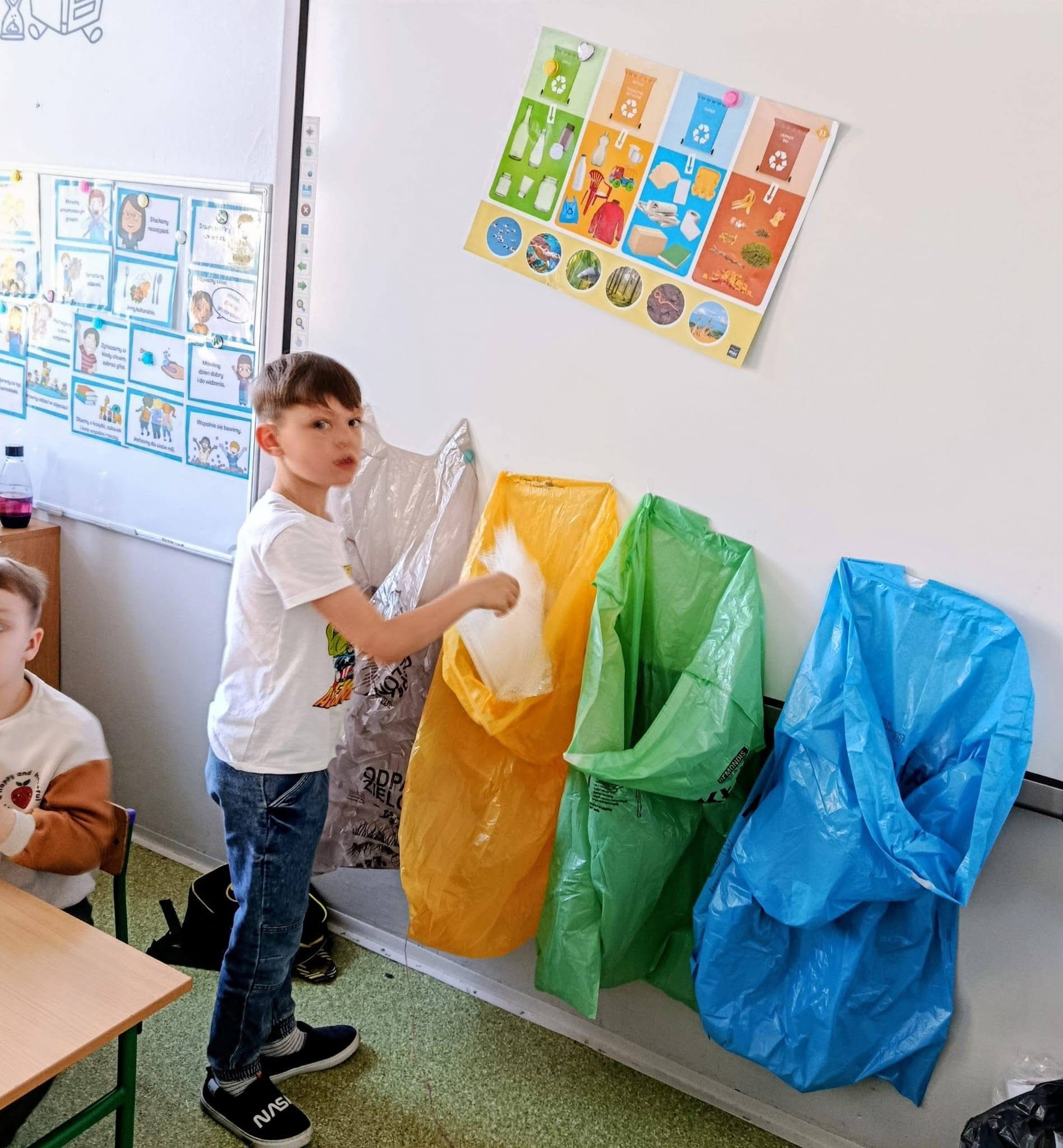 Nasi najmłodsi uczniowie poznawali jak segregować śmieci, co to jest recykling, jak oszczędzać energię i wodę, jak chronić rośliny i zwierzęta, a tym samym naszą planetę. Dzieci na ten temat dużo wiedziały, ale też wiele się nauczyły.