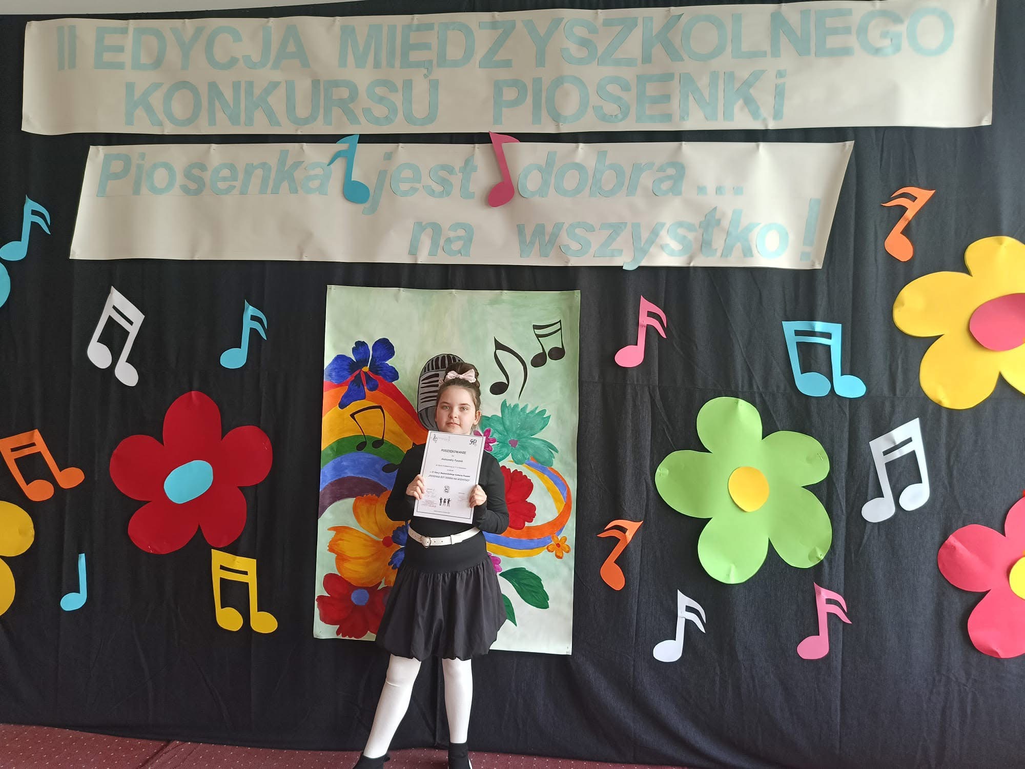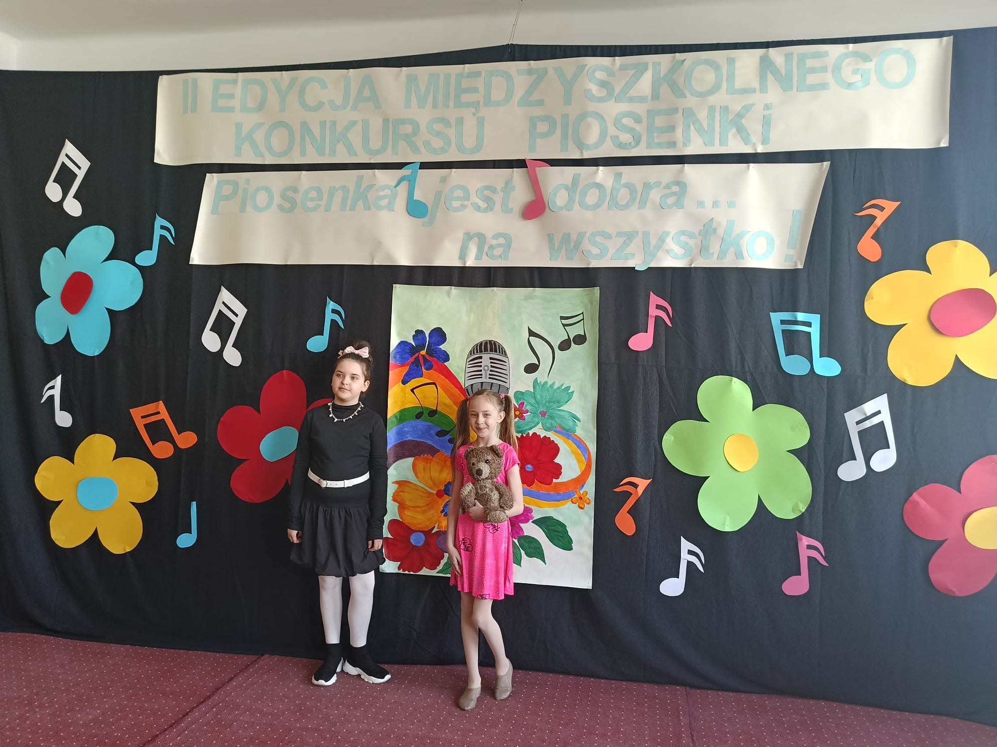 W dniu 08.04 w II Edycji Międzyszkolnego Konkursu Piosenki pt. "Piosenka jest dobra na wszystko" wzięły udział dwie uczennice naszej szkoły: Zofia Gruczoł z klasy 3a i Aleksandra Pysznik z klasy 3b.