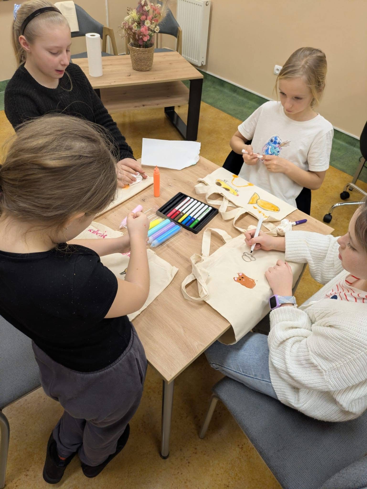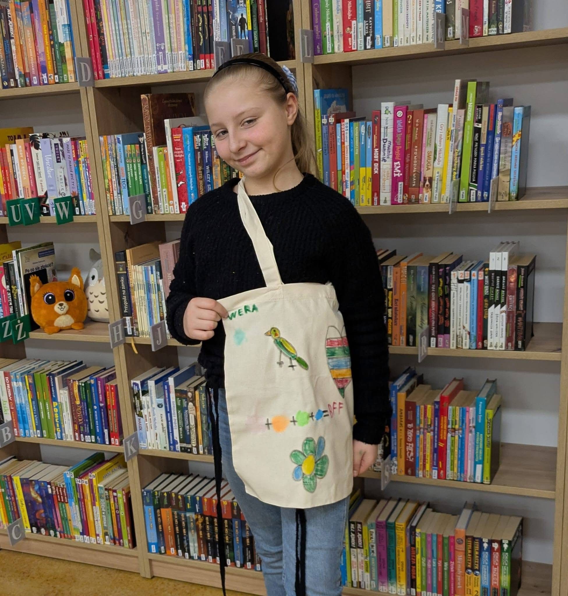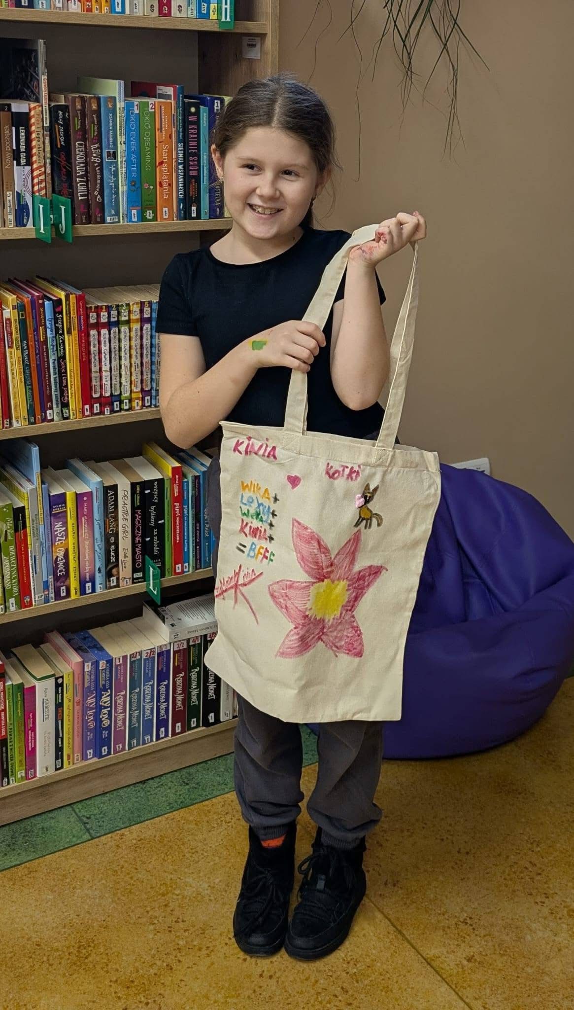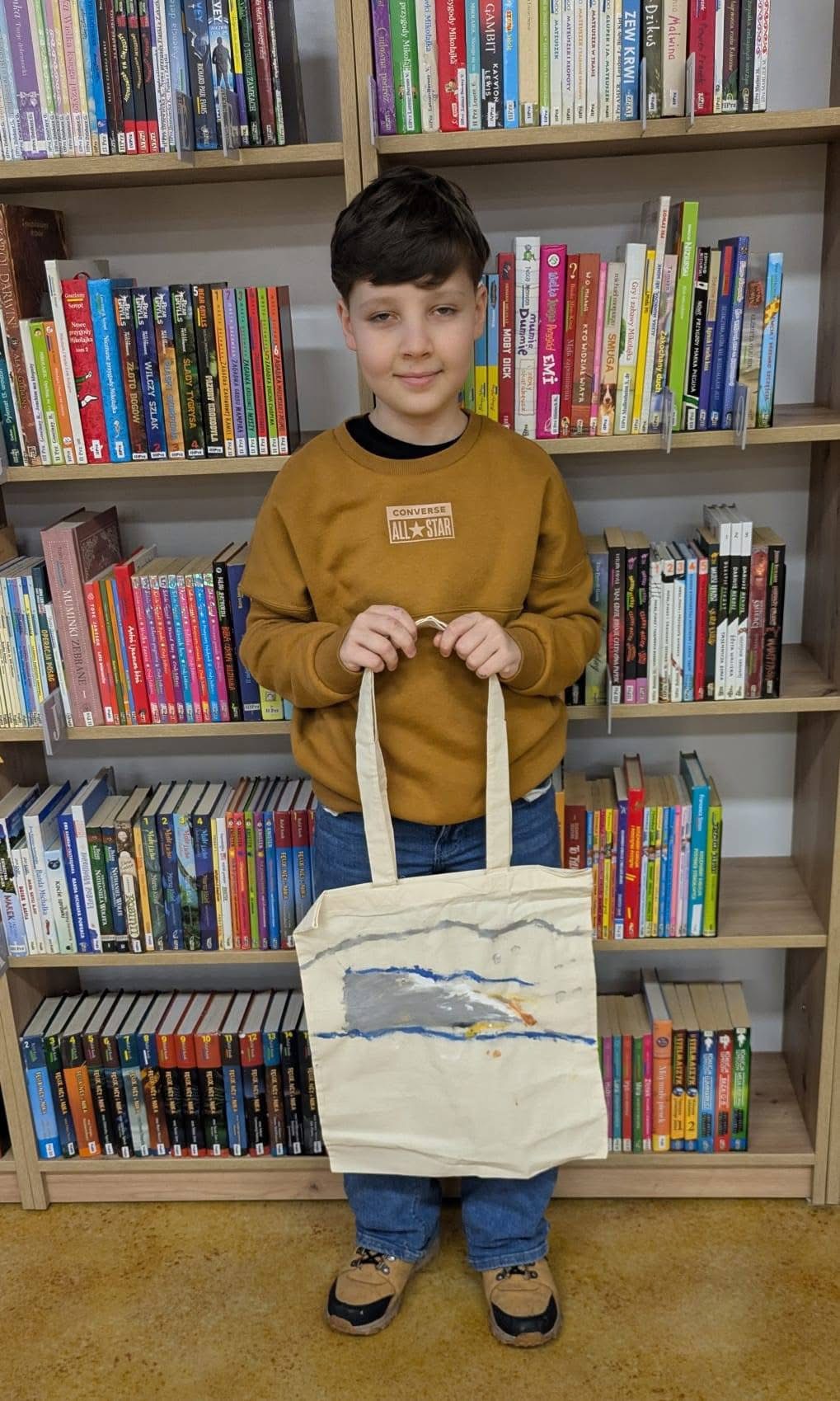 Zamiast tradycyjnych kartek, uczniowie ozdobili bawełniane torby na zakupy. Dzięki autorskim, kolorowym rysunkom, każda z nich stała się niepowtarzalnym i praktycznym upominkiem.
