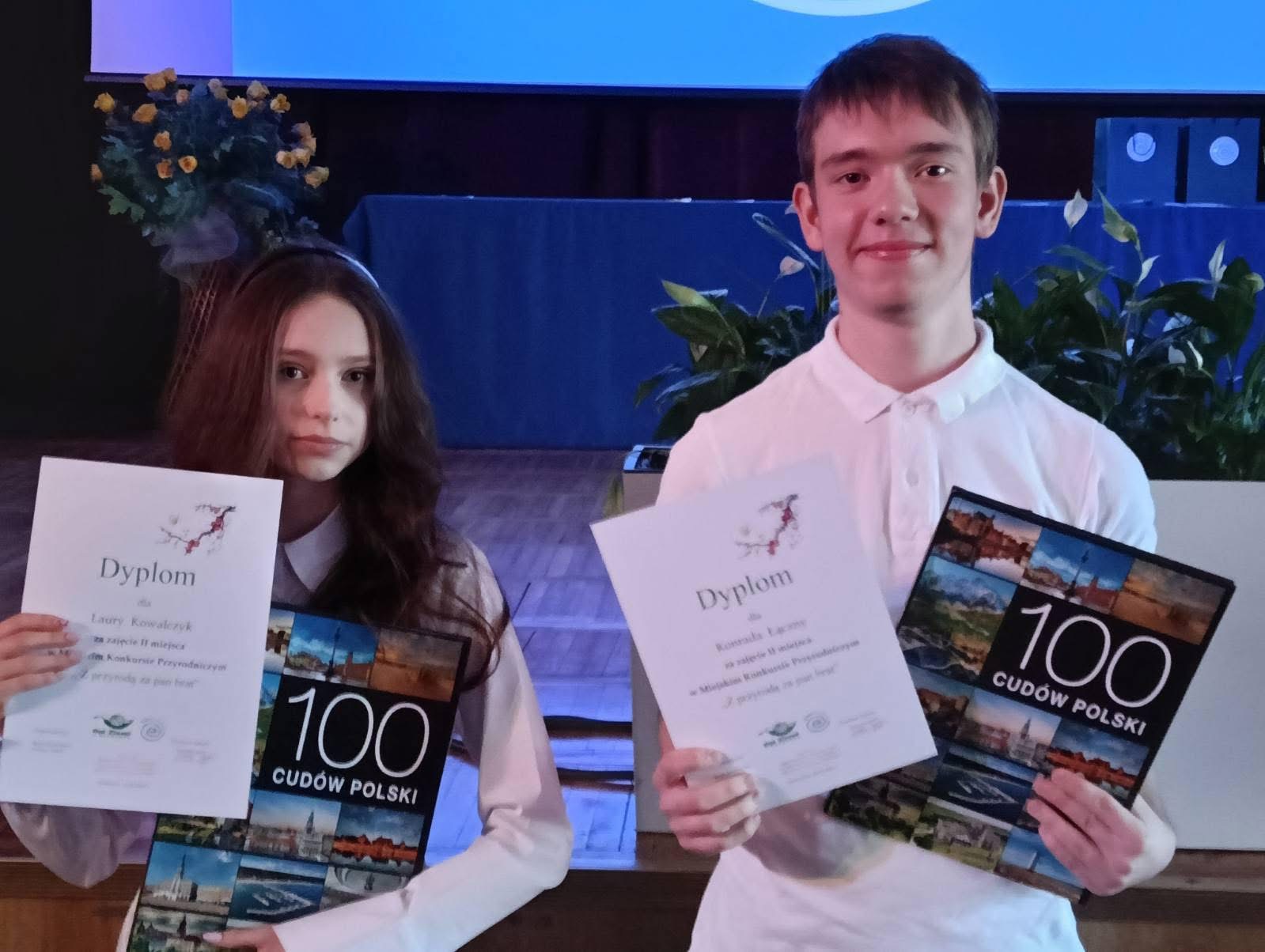 Uczniowie Konrad Łączny i Laura Kowalczyk zdobyli II miejsce w konkursie ,,Z przyrodą za pan brat”. Gratulujemy serdecznie uczniom oraz nauczycielom - Panu Pawłowi Cecha i Panu Łukaszowi Gałczyńskiemu.