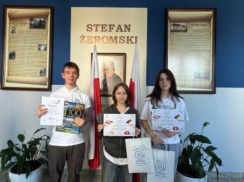 Dziś uczniowe naszej szkoły odebrali nagrody zdobyte za III miejsce w konkursie "Landeskunde - wędrówka po krajach niemieckiego obszaru językowego", zorganizowanym przez Zespół Szkół Elektronicznych i Informatycznych w Sosnowcu- gratulacje dla Kaliny Czekaj i Wiktorii Szott.