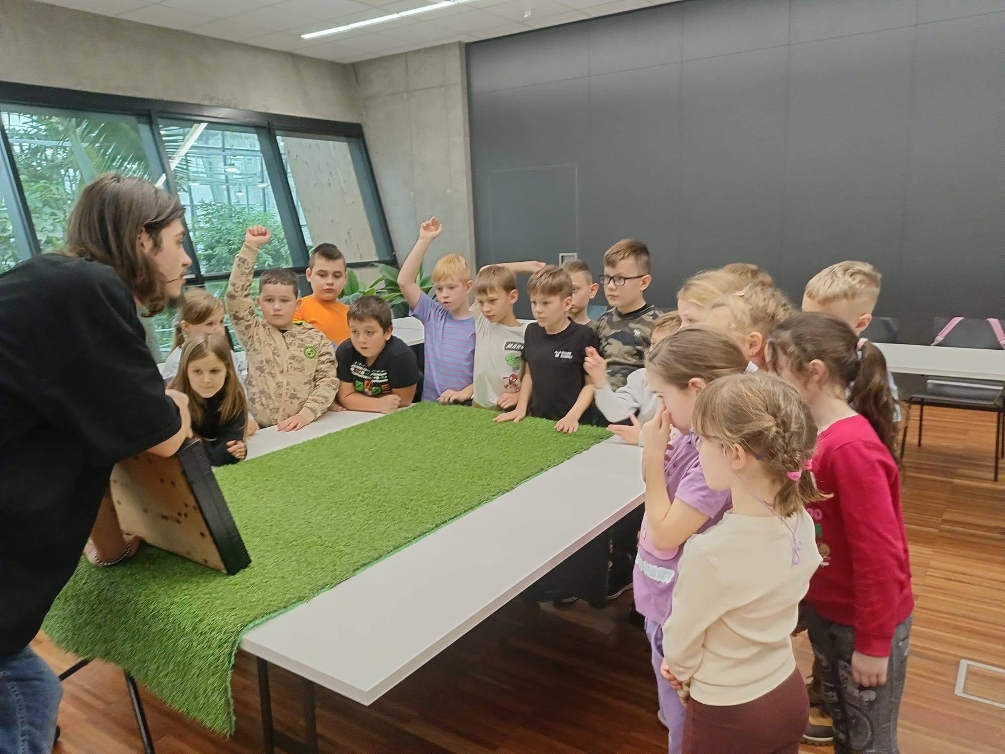 Uczniowie klasy 2A mieli niezwykłą okazję odwiedzić Egzotarium w Sosnowcu. Nasza przygoda zaczęła się od poznania różnych egzotycznych roślin i zwierząt, o których opowiadał przewodnik. Następnie czekała na nas kolejna niespodzianka w postaci ciekawych warsztatów o pająkach, wężach, jaszczurkach. Dzieci mogły z bliska zobaczyć te niezwykłe okazy oraz dowiedzieć się jak wygląda ich życie. Wszyscy uczestnicy wycieczki byli niezwykle zafascynowani tymi niecodziennymi stworzeniami. Była to wspaniała lekcja edukacji przyrodniczej.