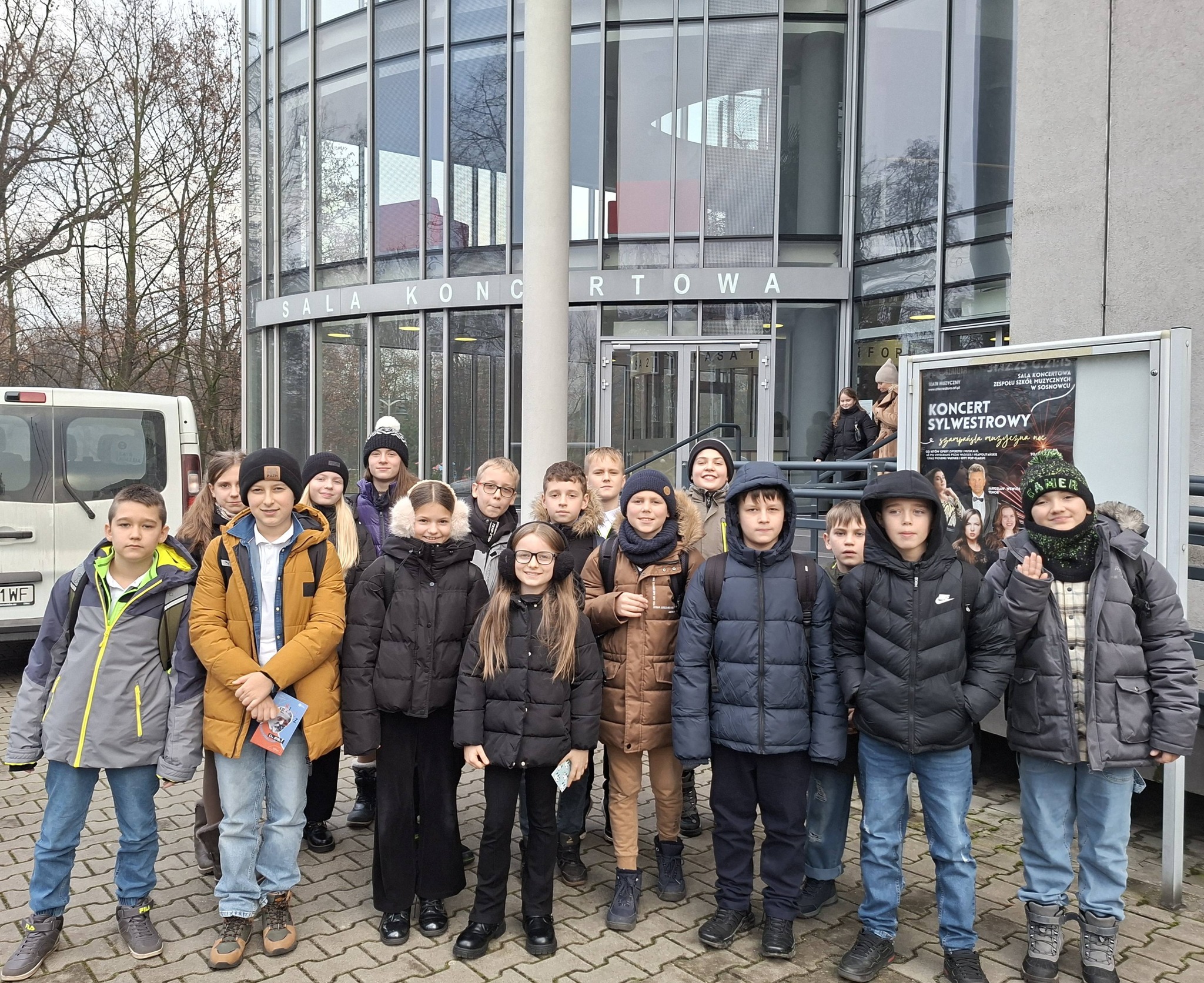 W ostatnim kwartale 2025 roku nasza placówka brała udział w programie ,,Wyjście z klasą", który umożliwił naszym uczniom wzięcie udziału w wycieczkach do miejsc na terenie naszego miasta. Dzięki pozyskanym środkom dzieci odwiedziły Egzotarium oraz obejrzały przedstawienia wystawione w Teatrze Zagłębia, Miejskim Klubie im. Jana Kiepury i w Sali Koncertowej Szkoły Muzycznej.