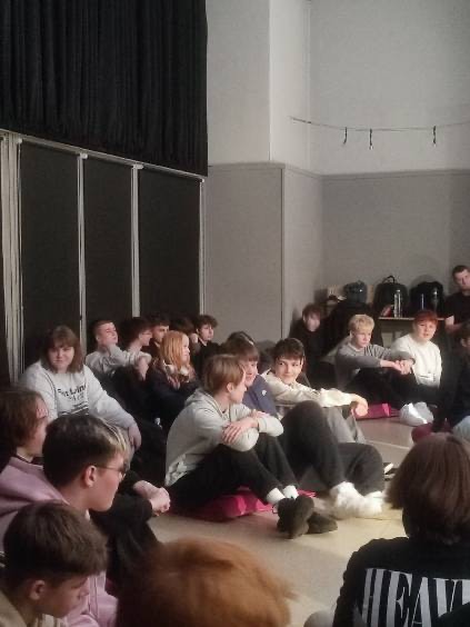 Uczniowie klasy 8 b uczestniczyli w niezwykle interesującym spektaklu ,,Sienkiewicz, do domu", który jest przedstawiany w wyjątkowej formie. Spektakl stawia pytanie o to, jak odzyskać literaturę z rąk szkolnych schematów i na nowo zobaczyć w niej wspólny język kultury, tradycji i doświadczeń. Było to nietuzinkowe spotkanie, idealne dla młodzieży szkolnej. Uczniowie byli bardzo zaangażowani i z zainteresowaniem słuchali aktorów, których występ był inspirujący oraz pełen humoru.