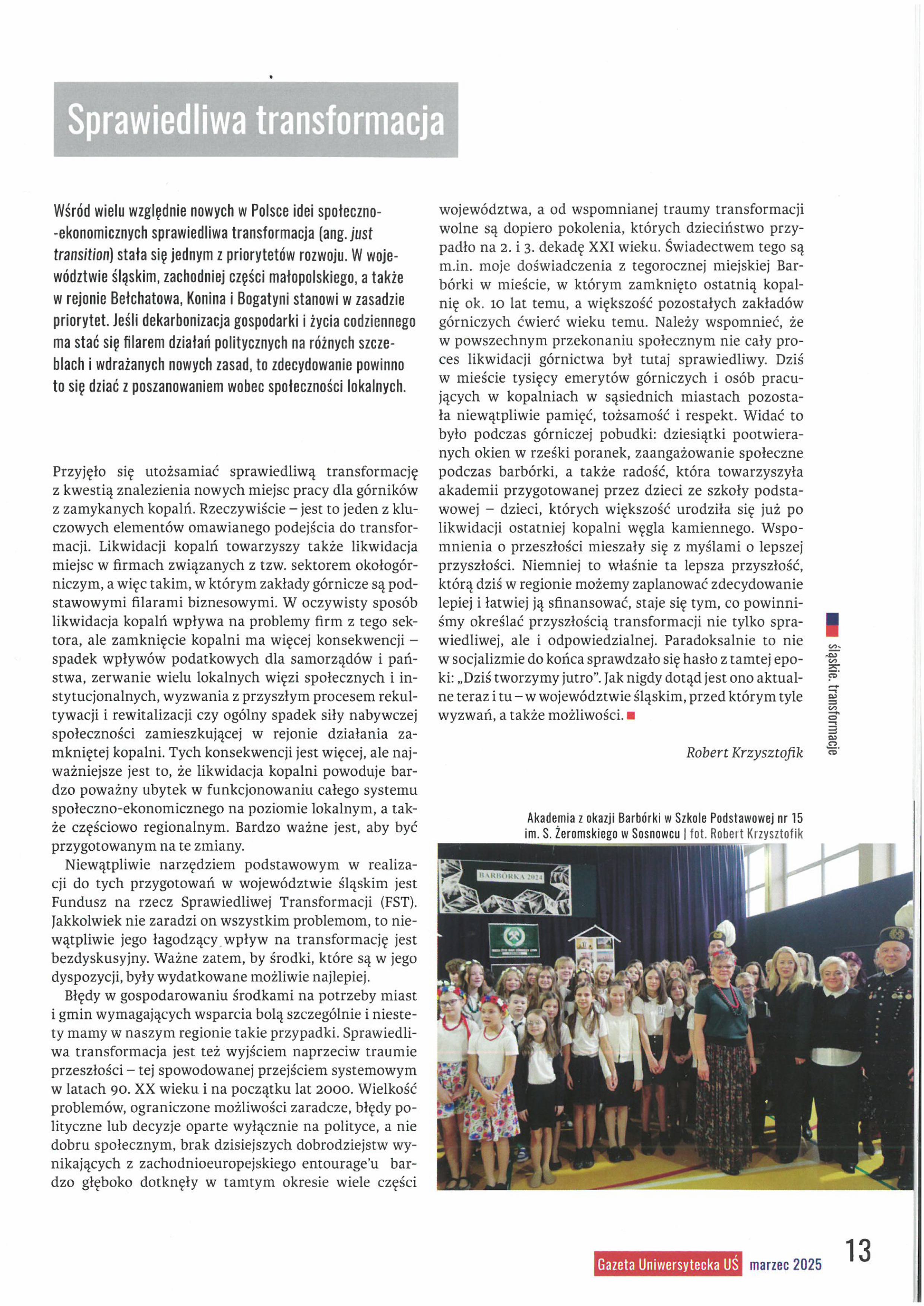 Artykuł autorstwa Pana dr hab. Roberta Krzysztofika dla Miesięcznika Uniwersytety Śląskiego w Katowicach - wydanie #6 (326) marzec 2025.
