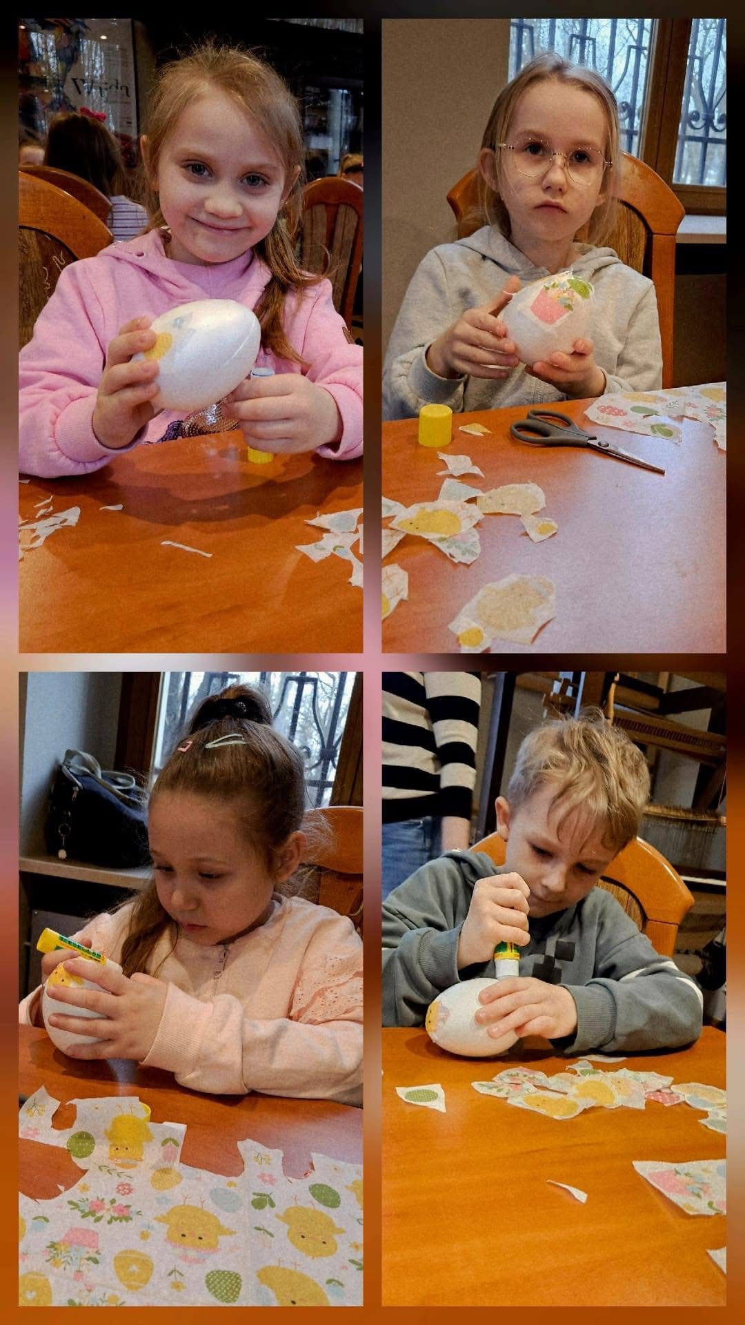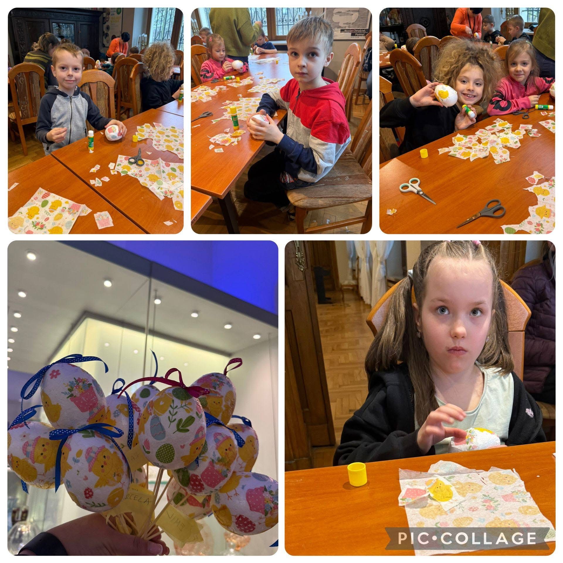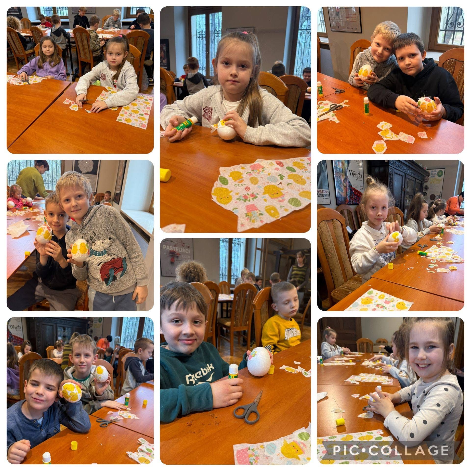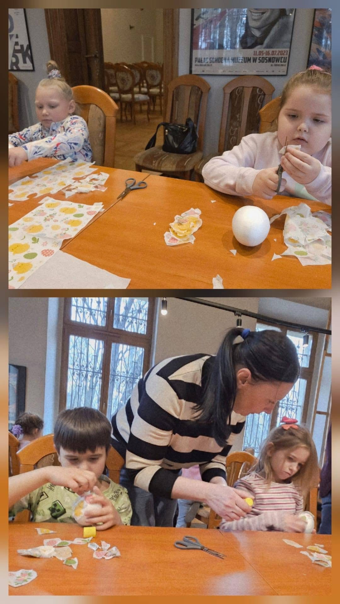 Podczas wizyty w muzeum dzieci uczestniczyły w warsztatach plastycznych, w czasie których ozdabiały jajka techniką decoupage. Brały również udział w zabawie w pokoju zagadek - rozwiązując różnorodne zadania, poznały najbardziej znane miejsca w Sosnowcu.