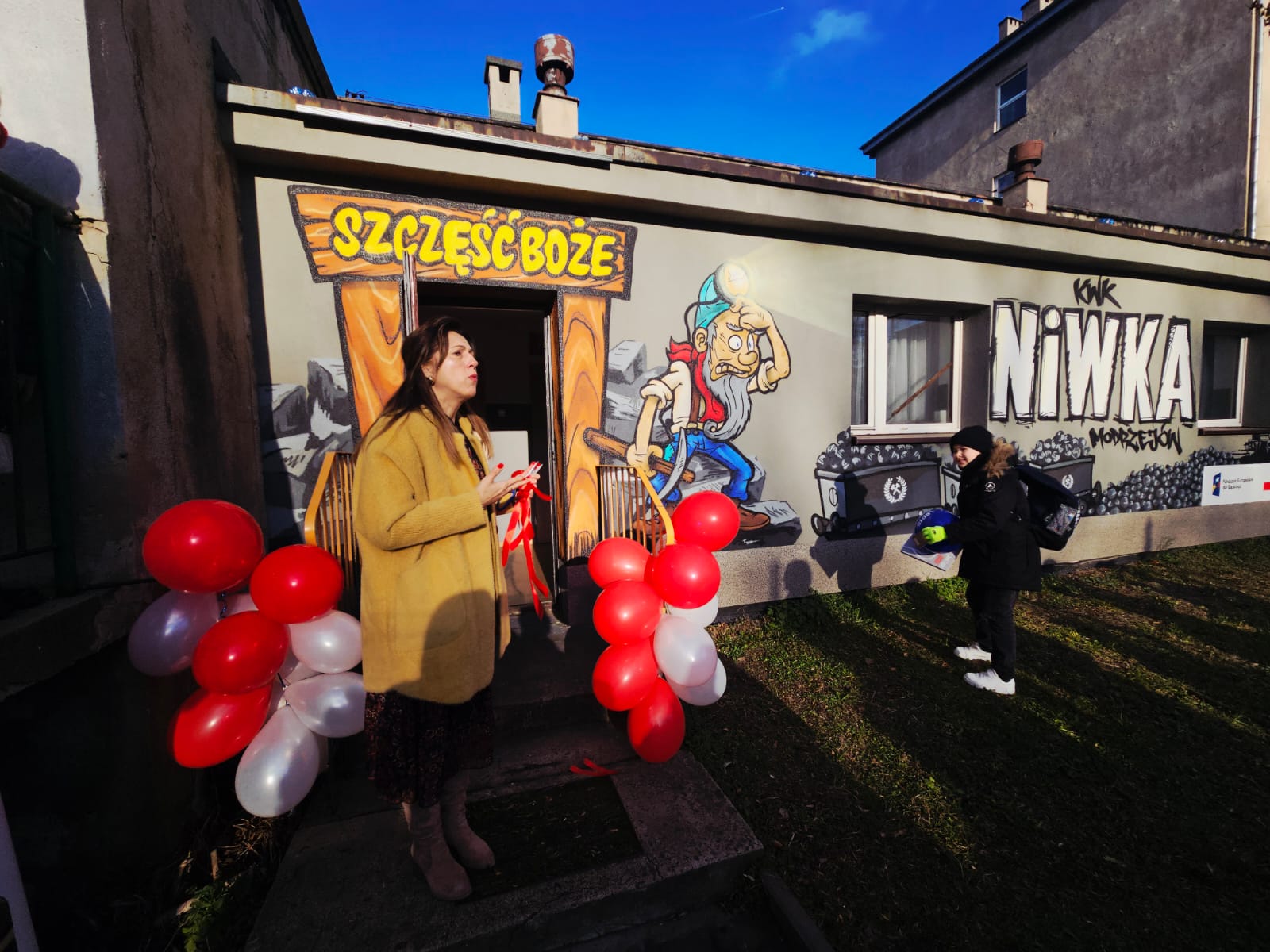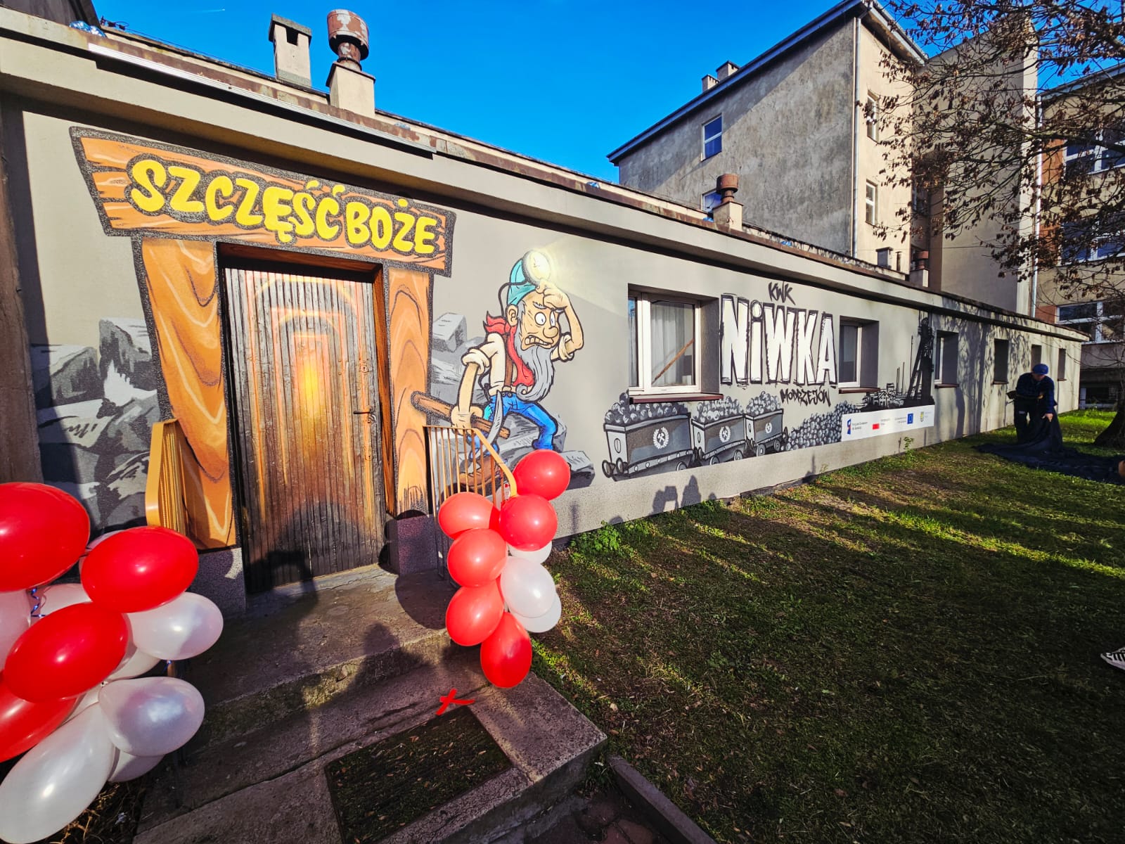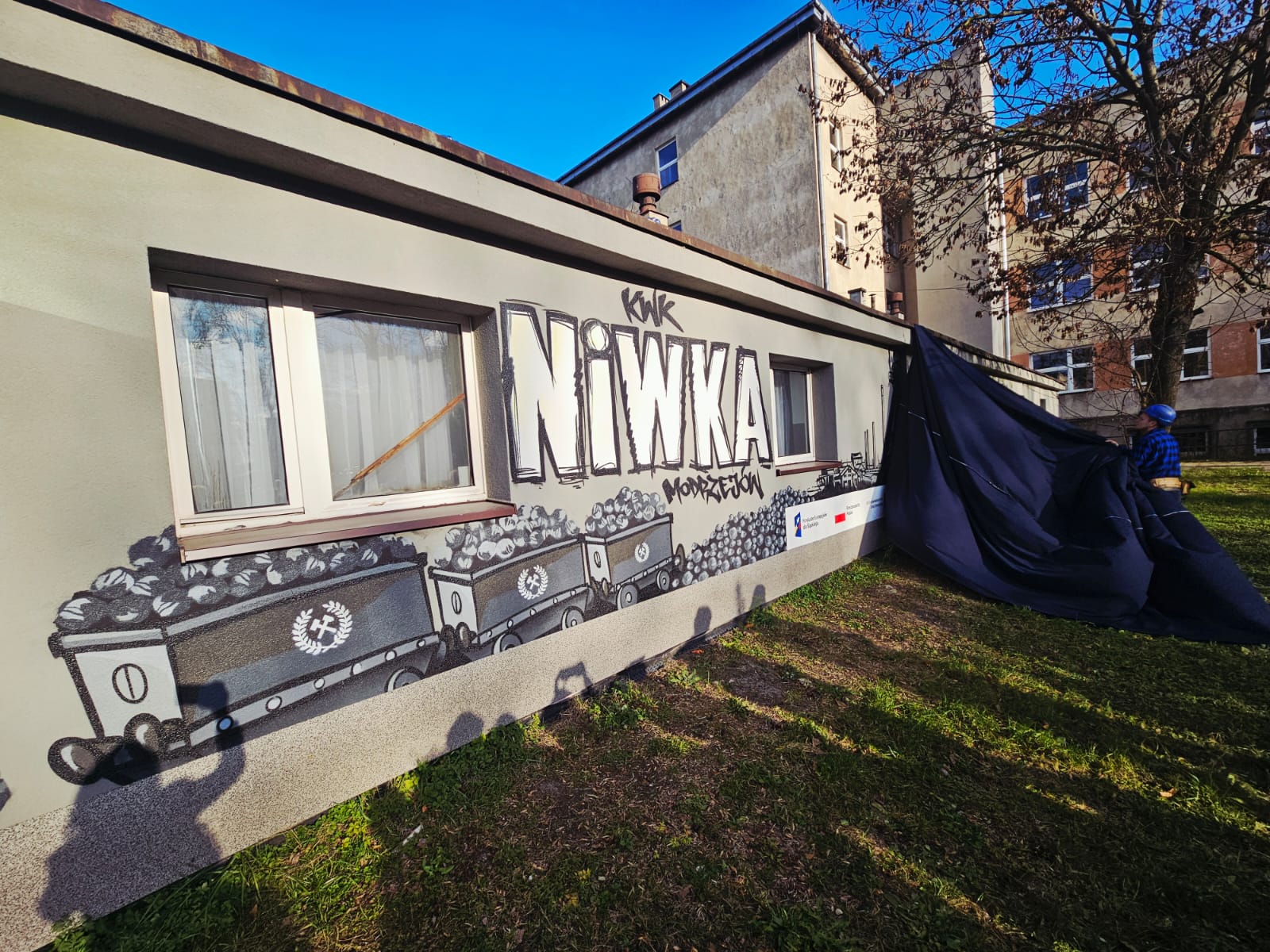 W dniu dzisiejszym odbyła się jeszcze jedna ważna uroczystość - odsłonięcie muralu, który powstał z inicjatywy Klubu Transformacji Niwka . Projekt muralu został stworzony przez naszych uczniów w ramach konkursu plastycznego. To niezwykłe przedsięwzięcie jest symbolem współpracy i dbałości o naszą górniczą historię. Serdecznie dziękujemy za współpracę oraz koordynowanie działań Pracownicom Klubu Transformacji Niwka oraz naszym nauczycielom, a także Panu Kacprowi Górowskiemu za pomoc techniczną.