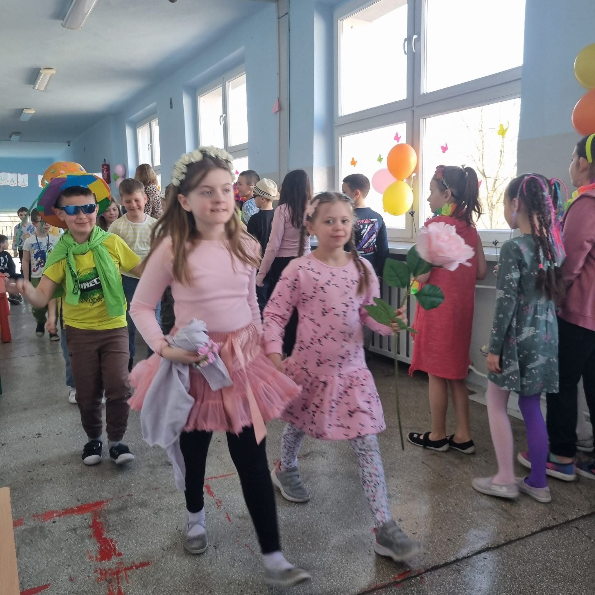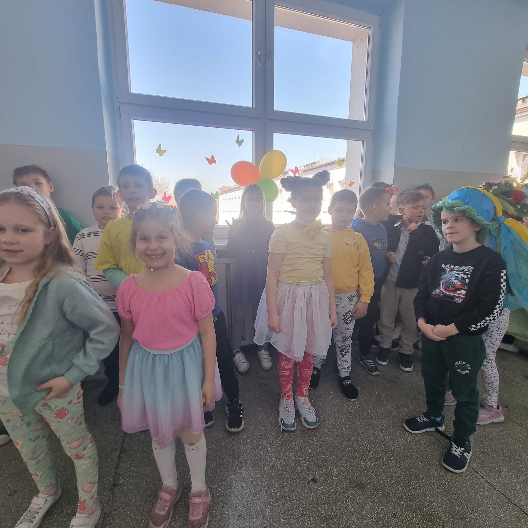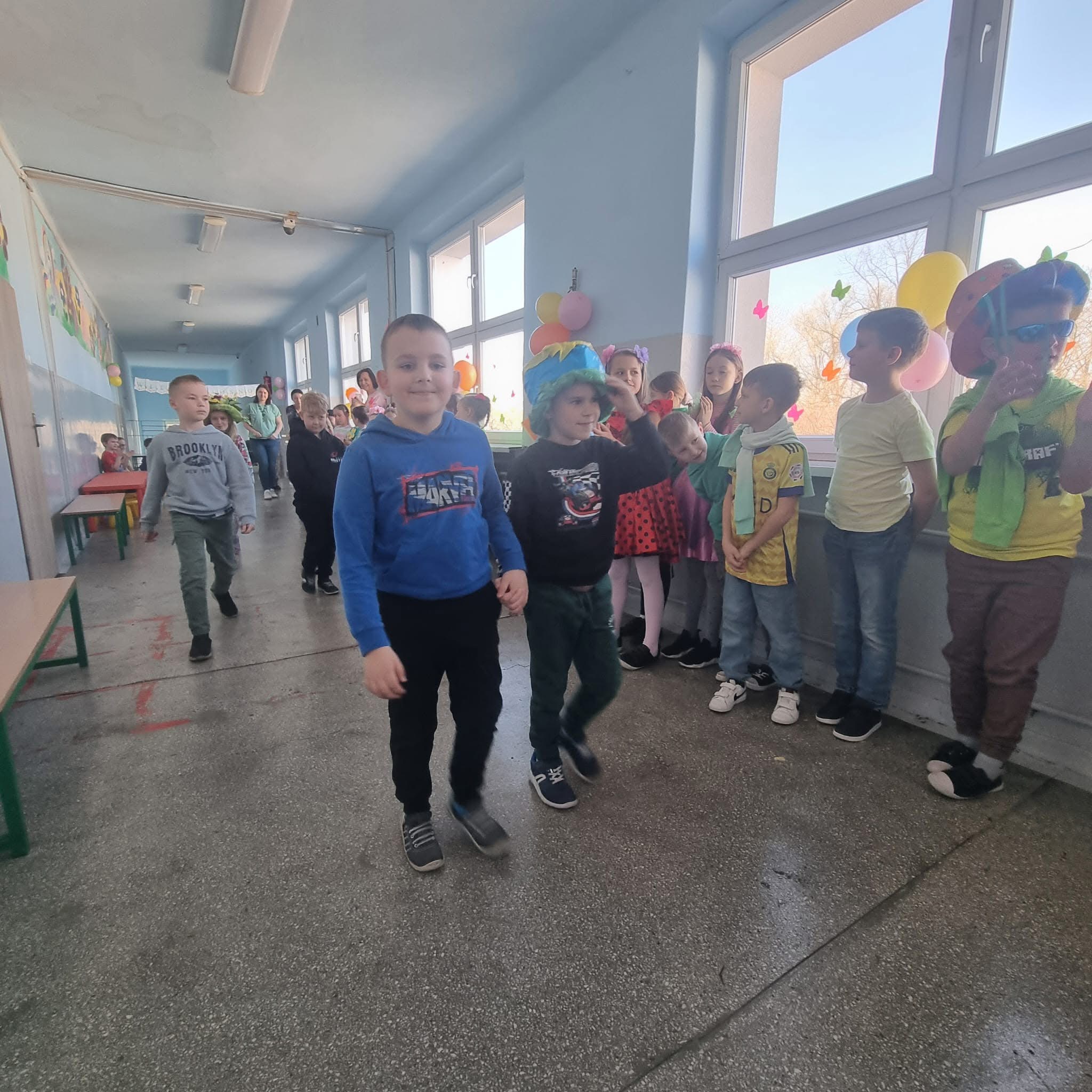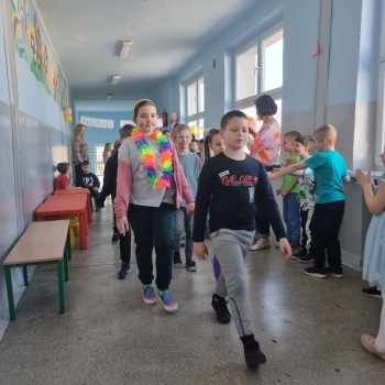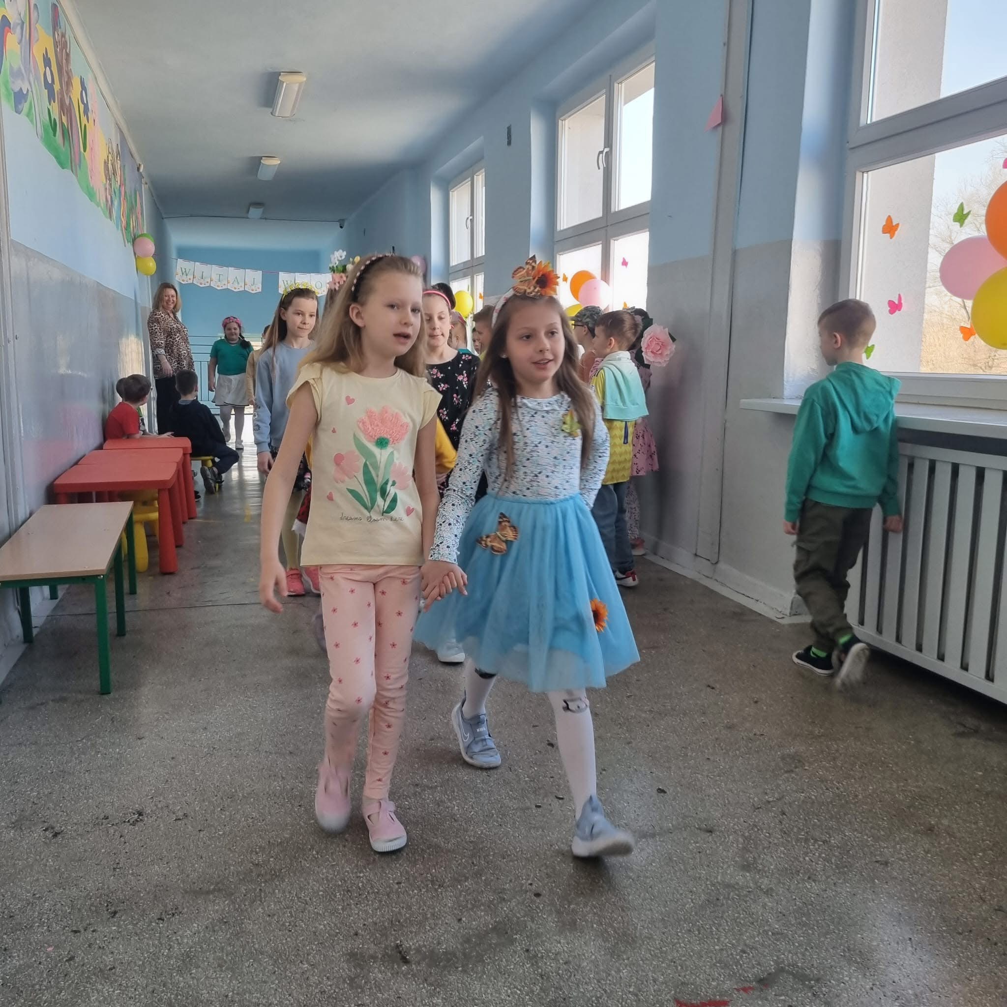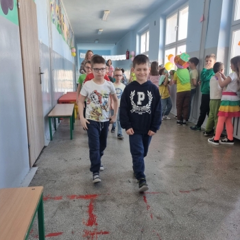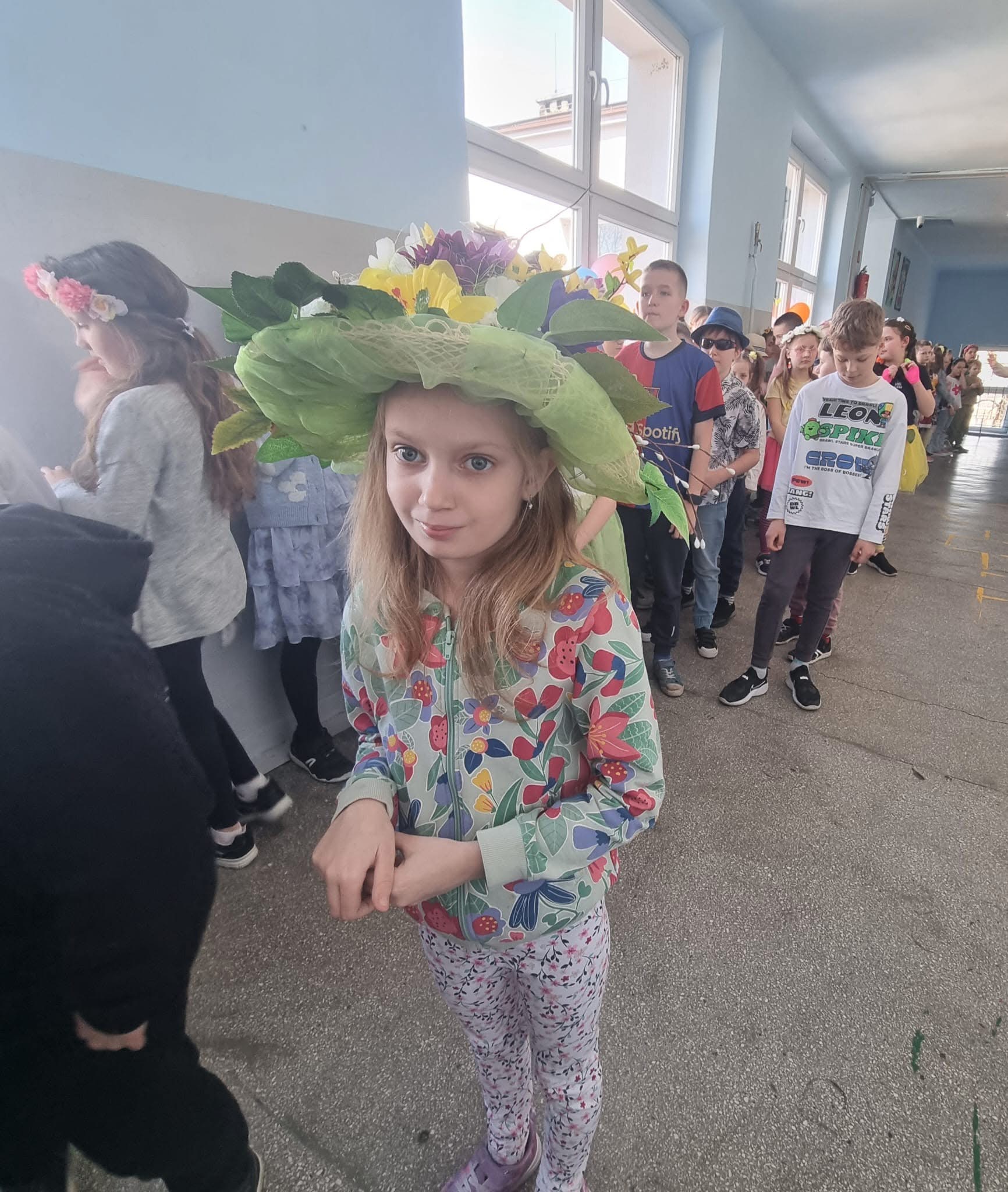 Uczniowie ubrali wiosenne stylizacje, ciekawe nakrycia głowy?, peleryny, płaszczyki, kolorowe spodnie, sukienki ?lub spódnice, wstążki, motyle? lub kwiaty we włosach. ?