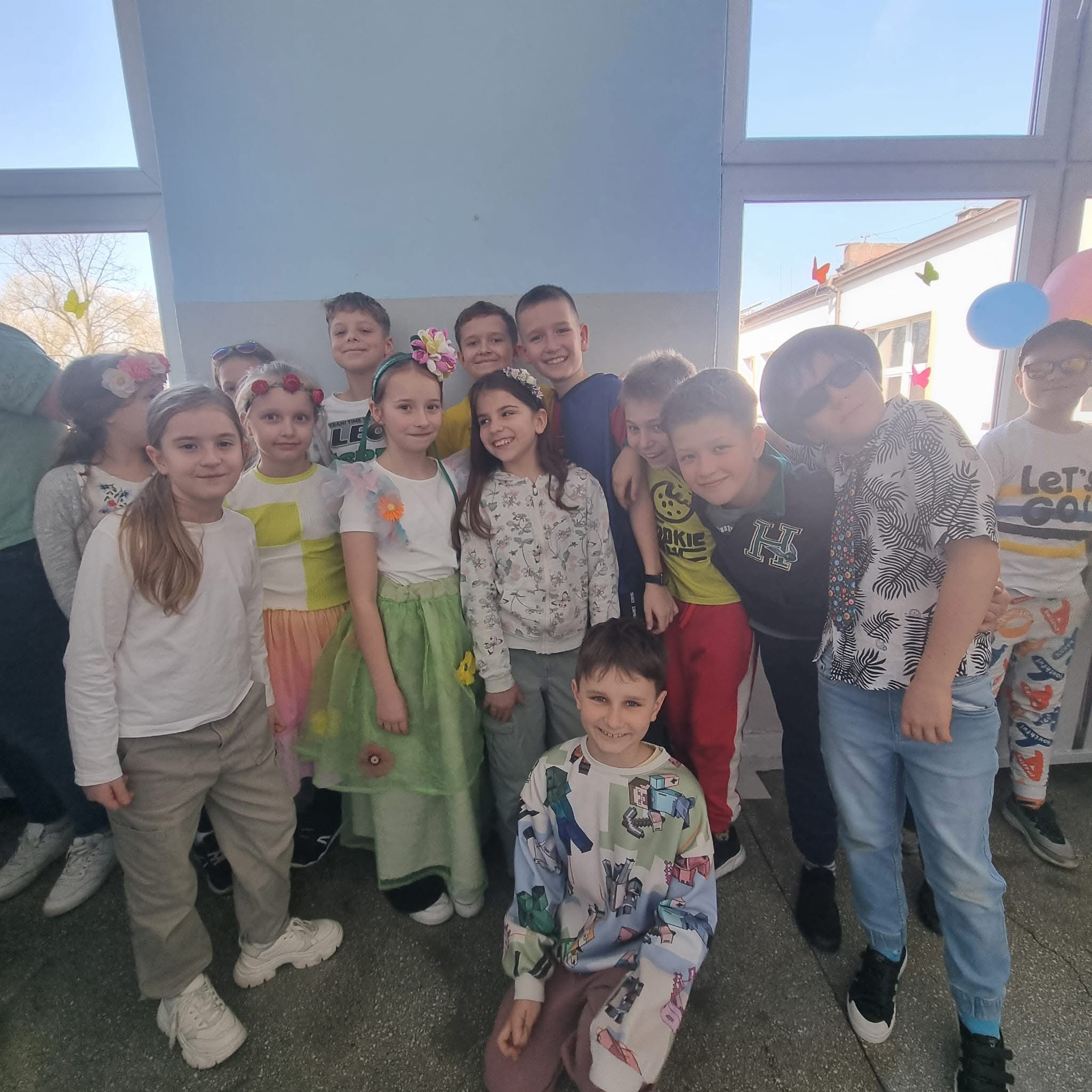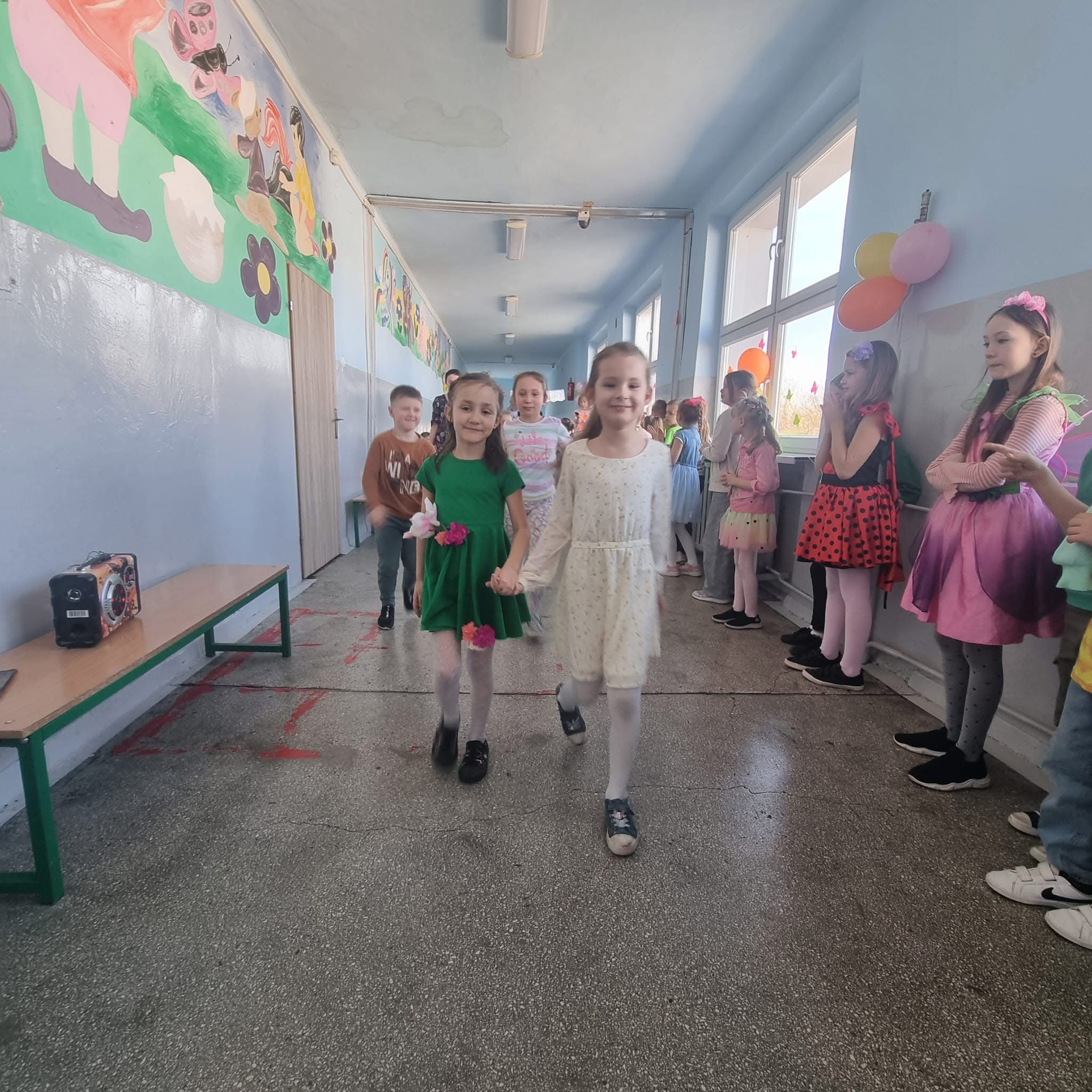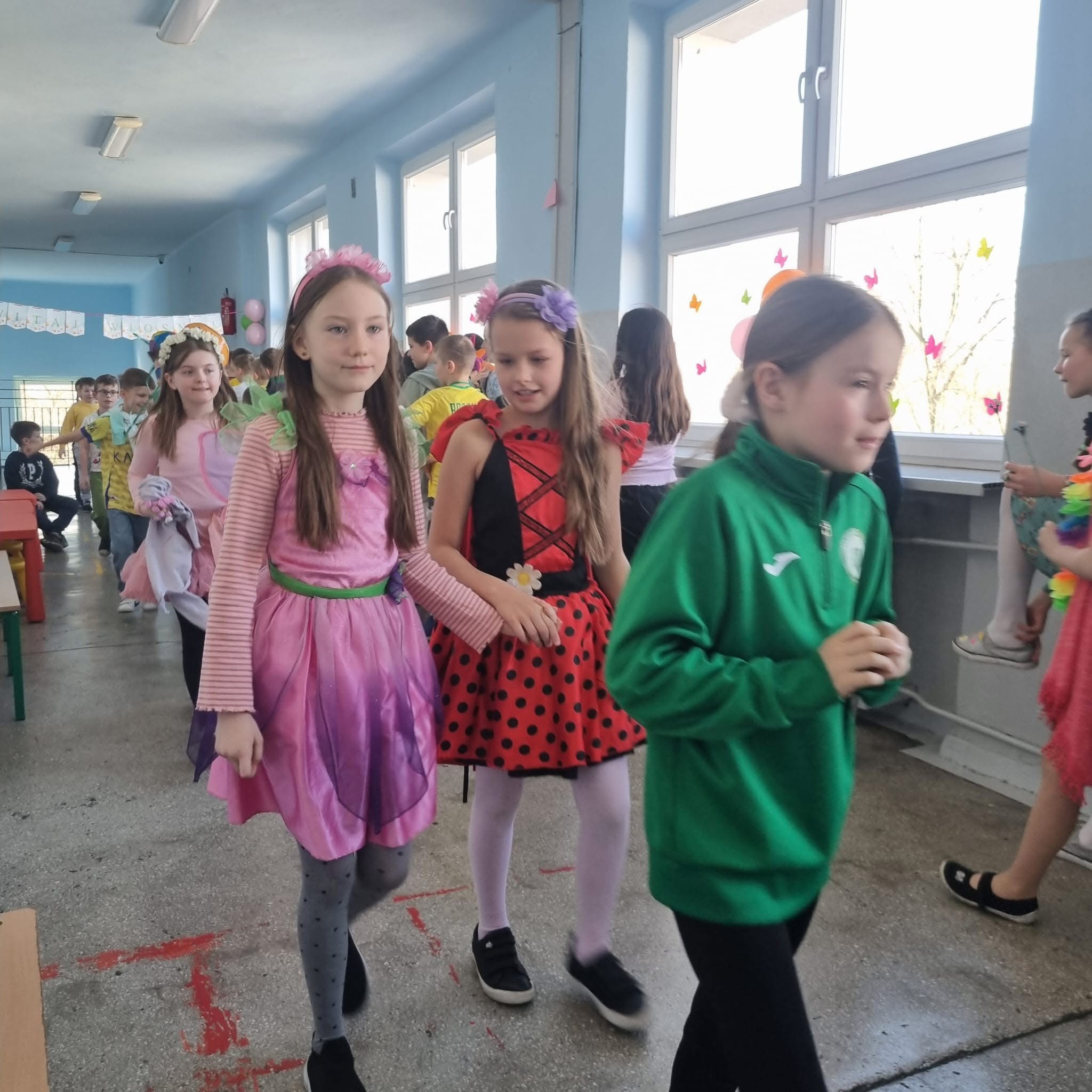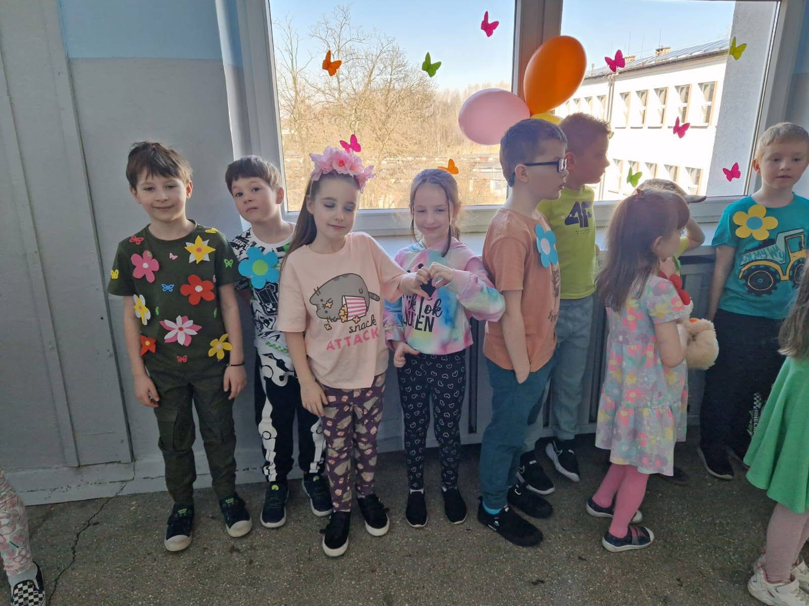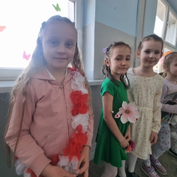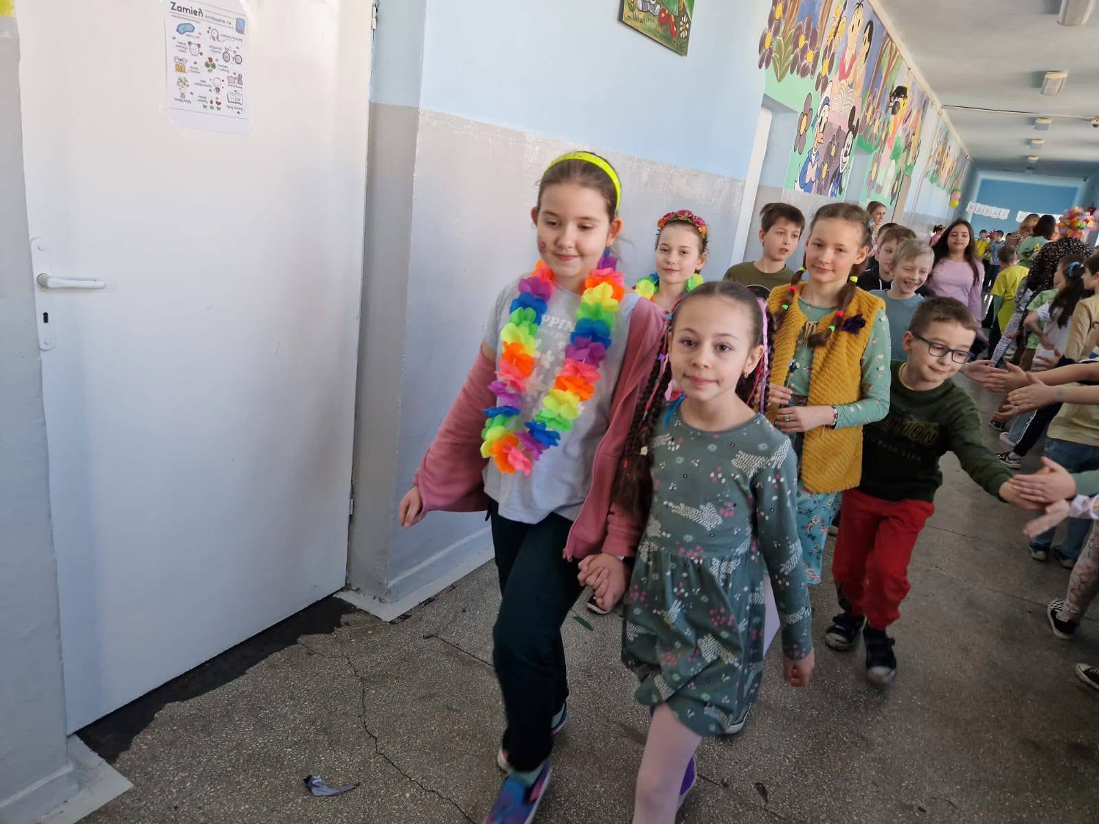 Uczniowie ubrali wiosenne stylizacje, ciekawe nakrycia głowy?, peleryny, płaszczyki, kolorowe spodnie, sukienki ?lub spódnice, wstążki, motyle? lub kwiaty we włosach. ?