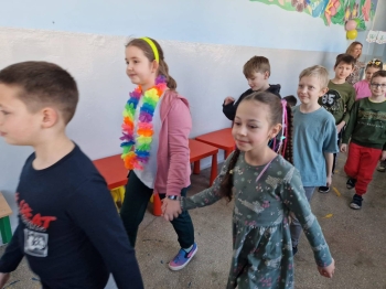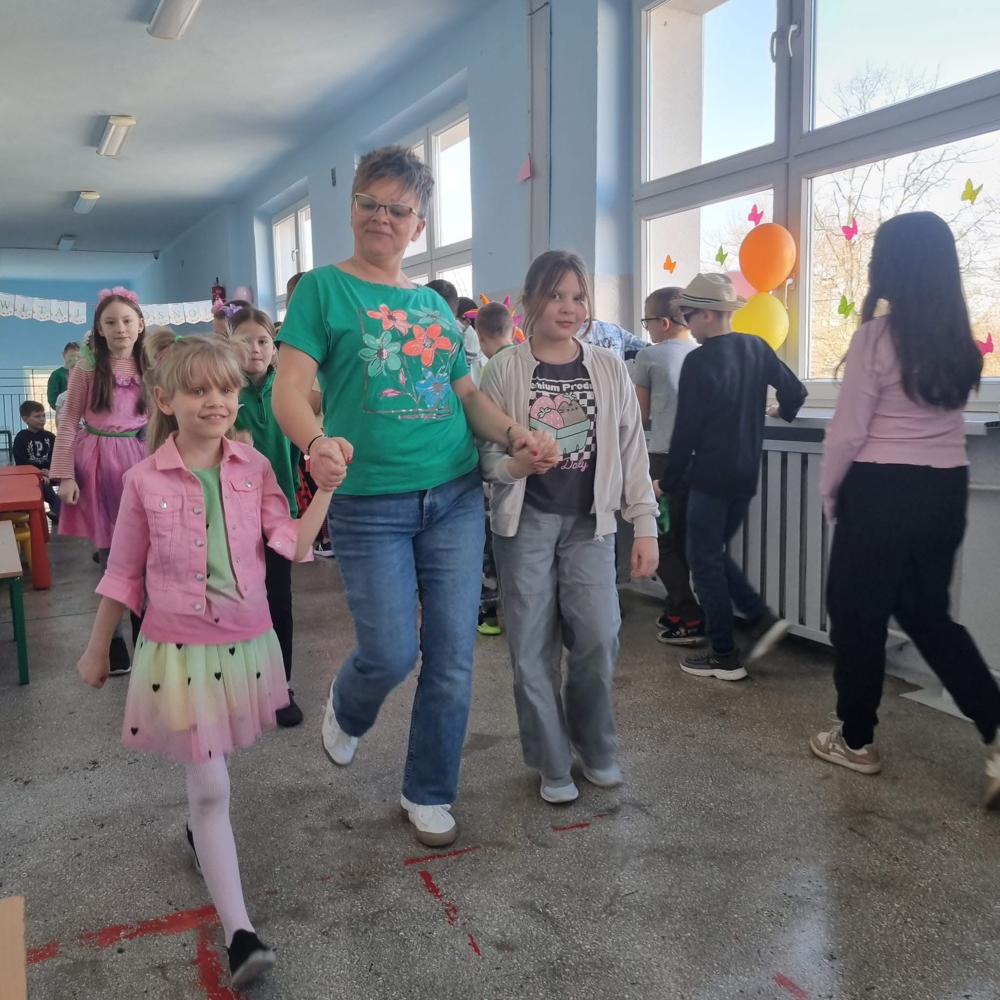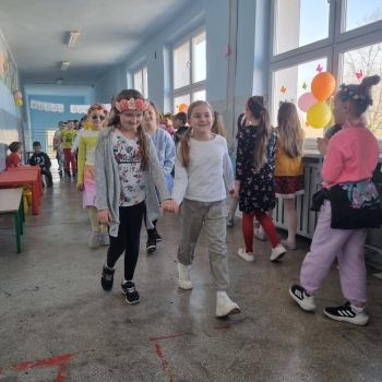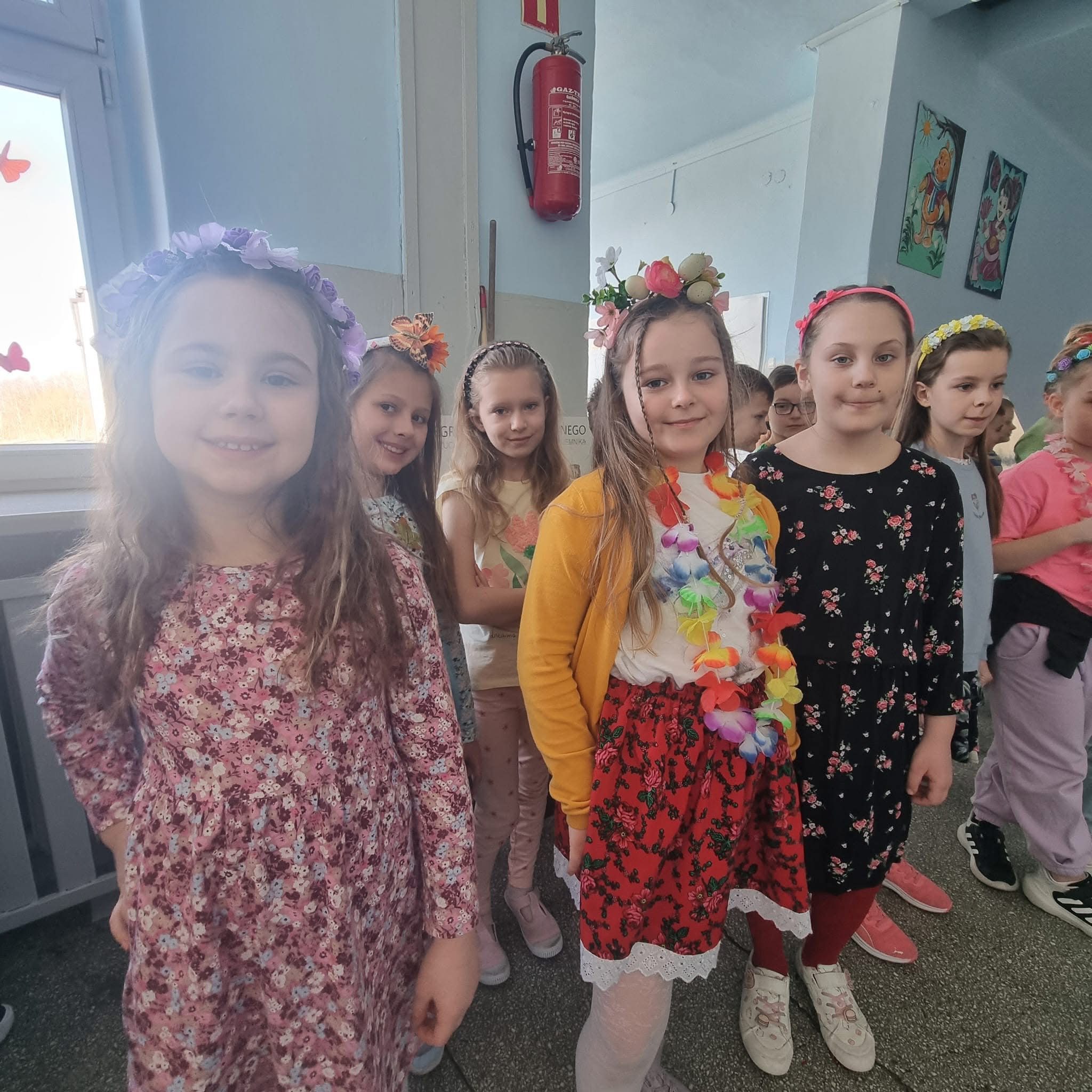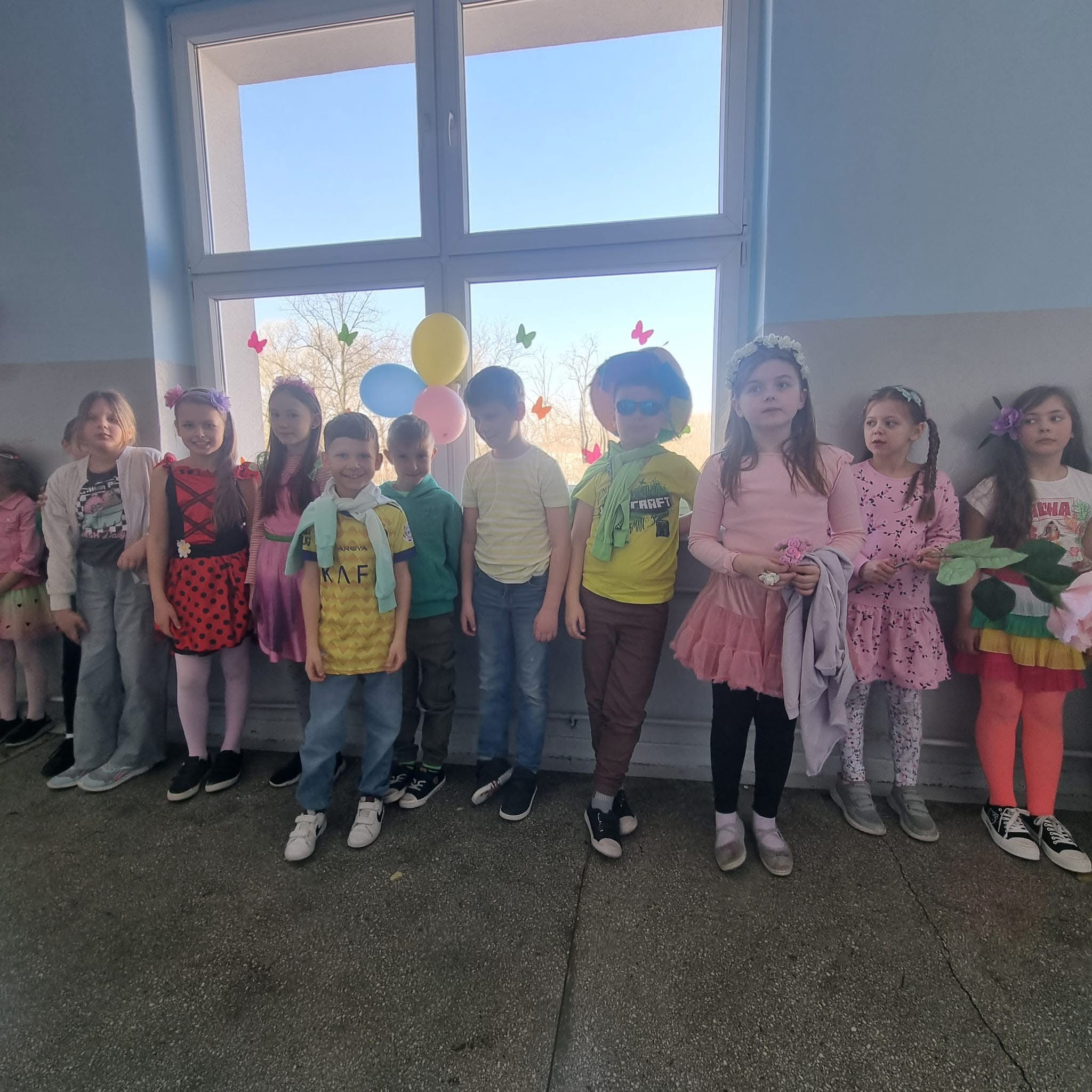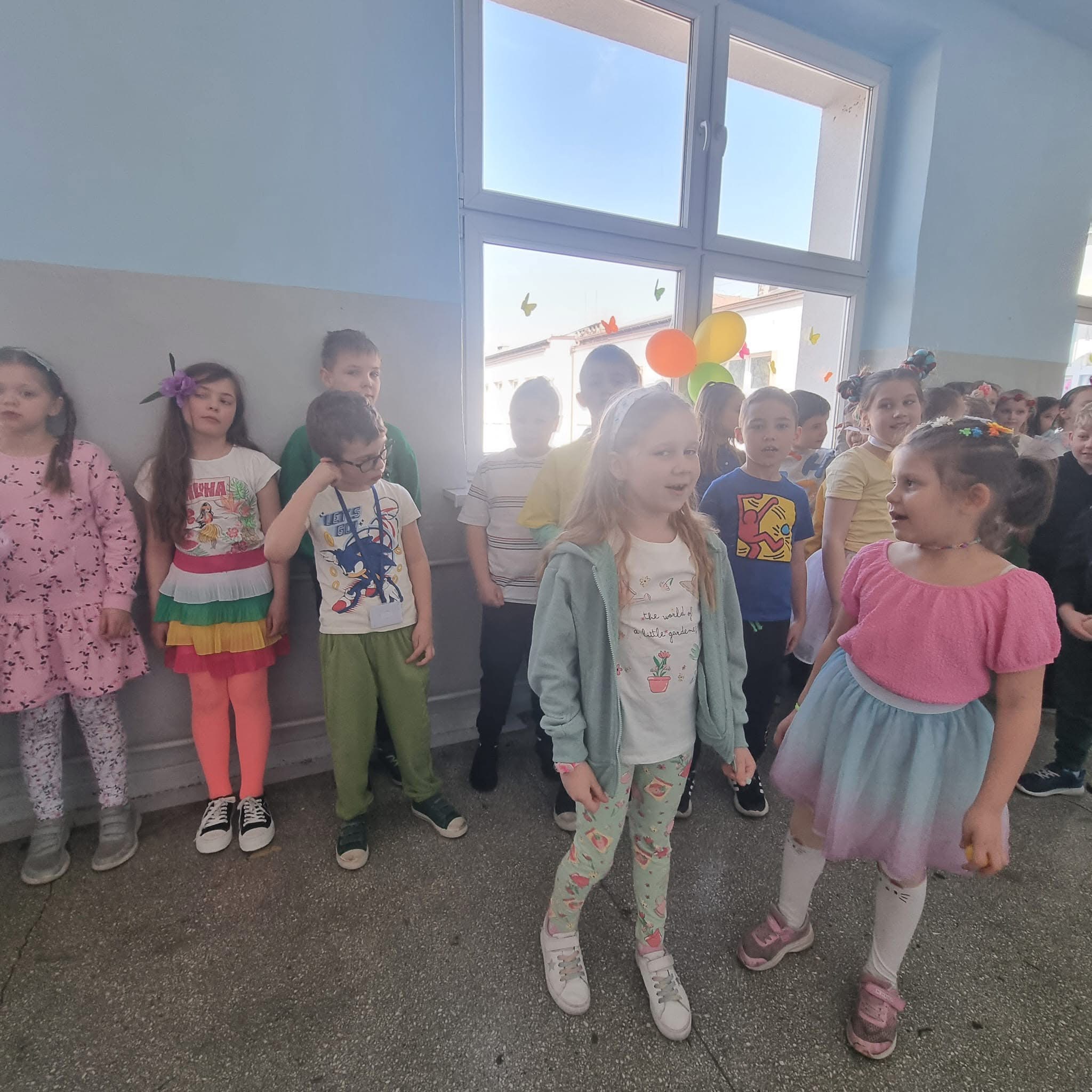 Uczniowie ubrali wiosenne stylizacje, ciekawe nakrycia głowy?, peleryny, płaszczyki, kolorowe spodnie, sukienki ?lub spódnice, wstążki, motyle? lub kwiaty we włosach. ?