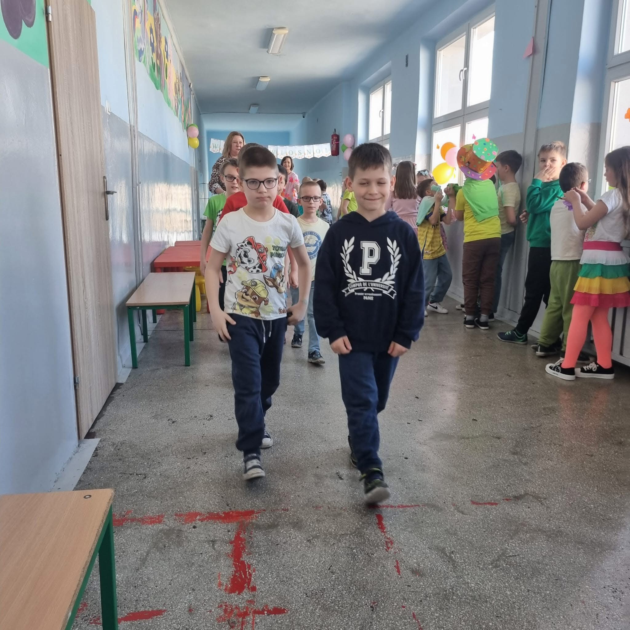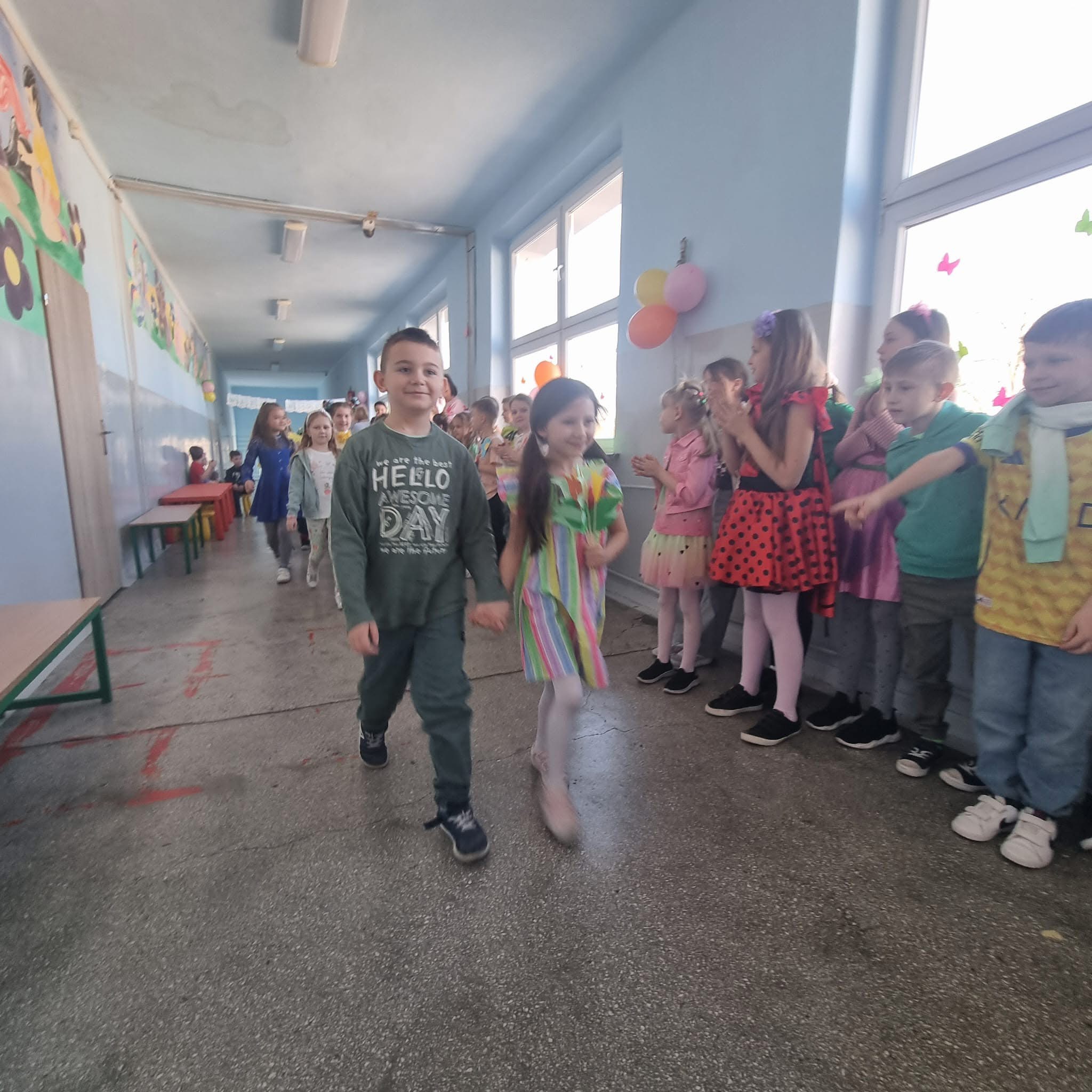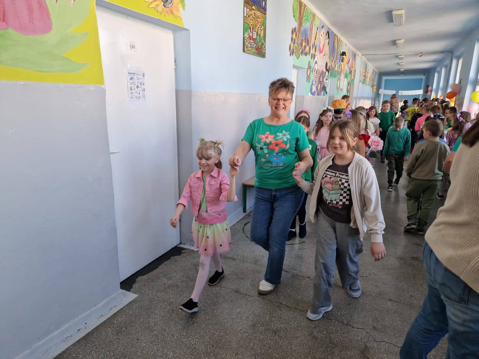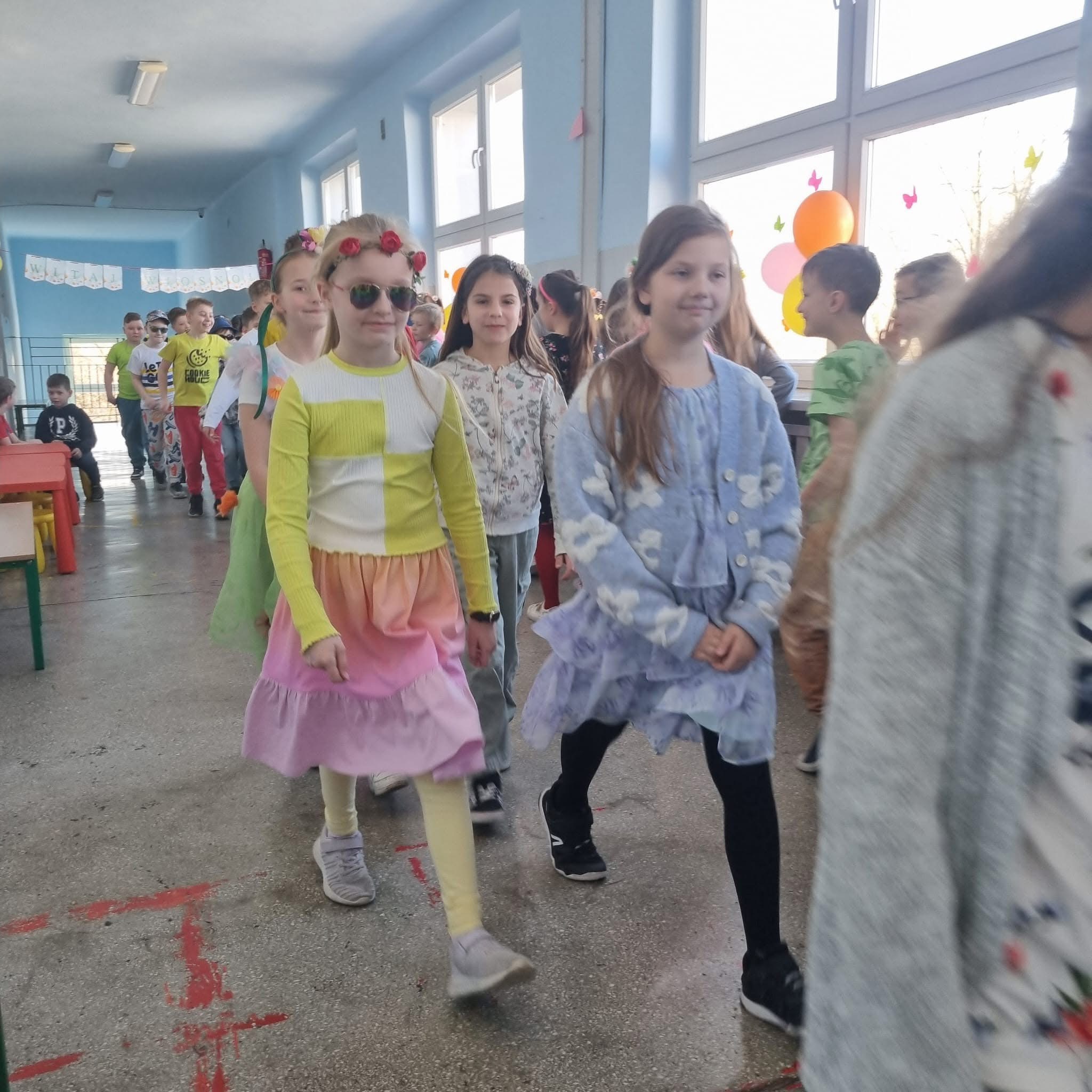 dzień wiosny dzieci z klas I-III powitały pokazem mody.